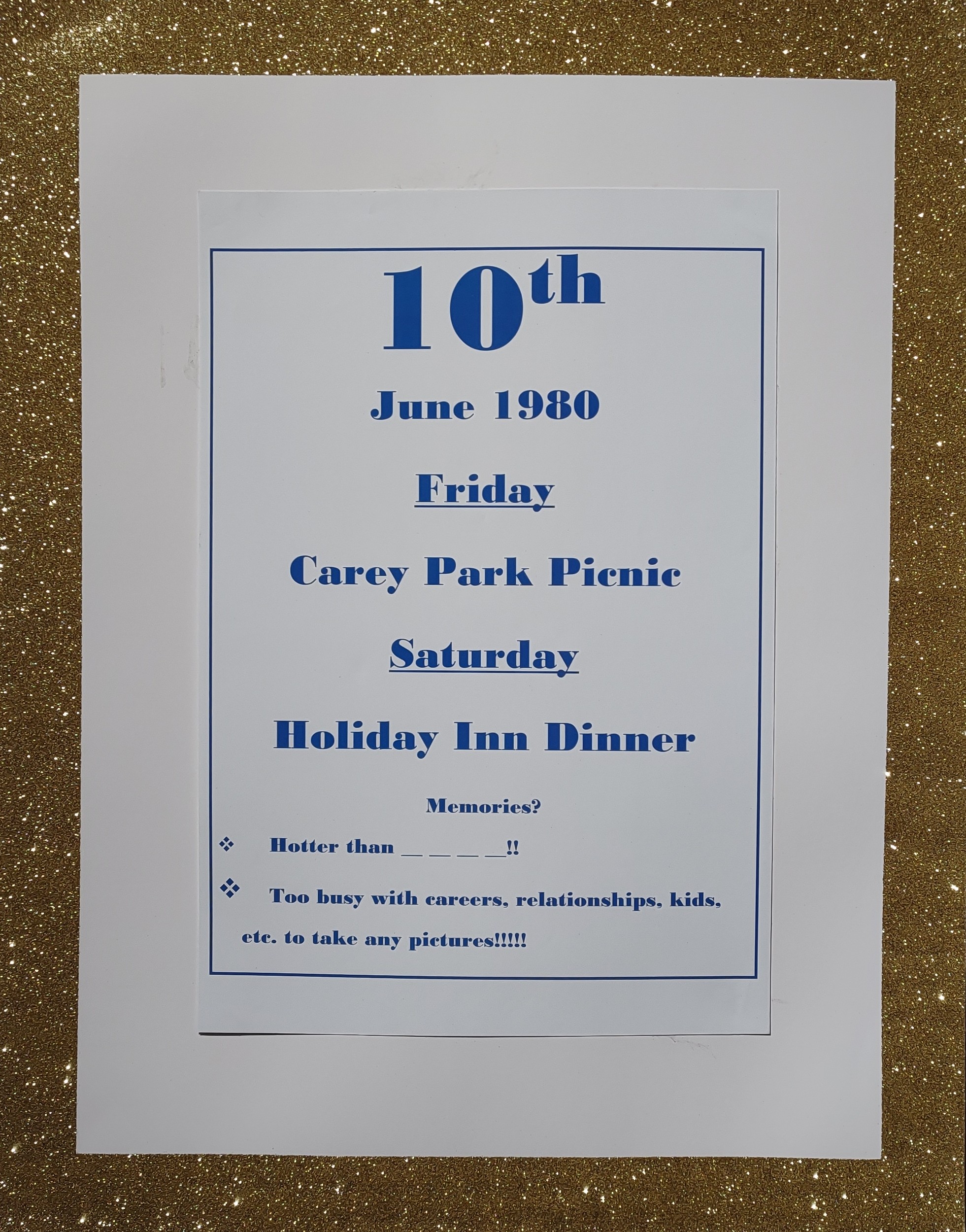 et al., for putting together a very pleasant, fun and enjoyable two evenings with all of our classmates who attended. And for those of you who couldn't attend, you were very much